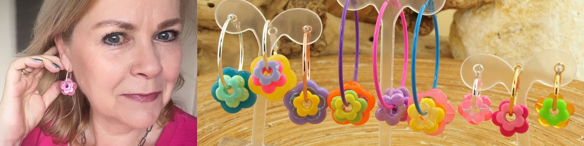 Oorbellen creolen Bloemkralen frisse kleuren Large