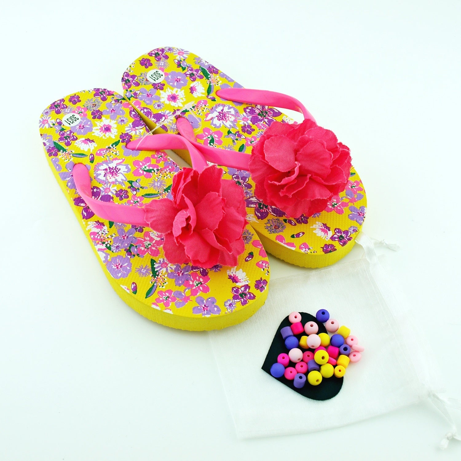 Heerlijk toch om teenslippers te dragen als het warm weer is. Staat toch veel leuker onder dat rokjes, jurkje of je short. Helemaal als jij je teennagels vrolijk hebt gelakt, kleurrijke enkelbandjes om hebt. Maar hoe leuk is het om van je saaie flip flops unieke exemplaren te maken door ze te pimpen met kralen en schelpen, helemaal naar jouw smaak en stijl.