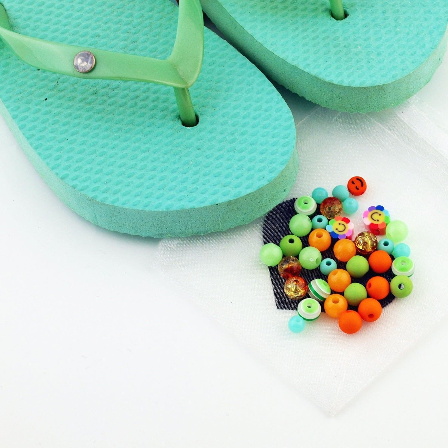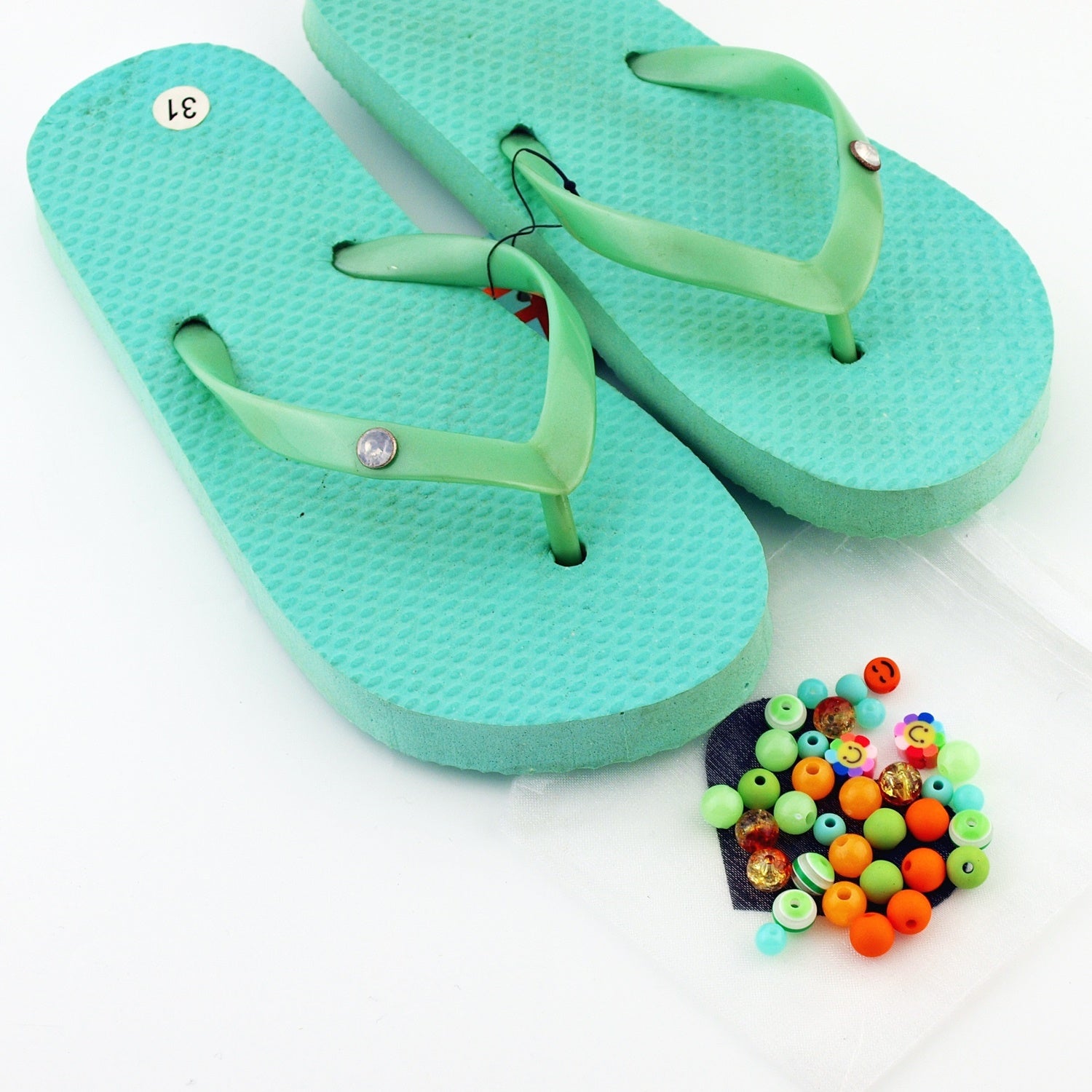 Heerlijk toch om teenslippers te dragen als het warm weer is. Staat toch veel leuker onder dat rokjes, jurkje of je short. Helemaal als jij je teennagels vrolijk hebt gelakt, kleurrijke enkelbandjes om hebt. Maar hoe leuk is het om van je saaie flip flops unieke exemplaren te maken door ze te pimpen met kralen en schelpen, helemaal naar jouw smaak en stijl.