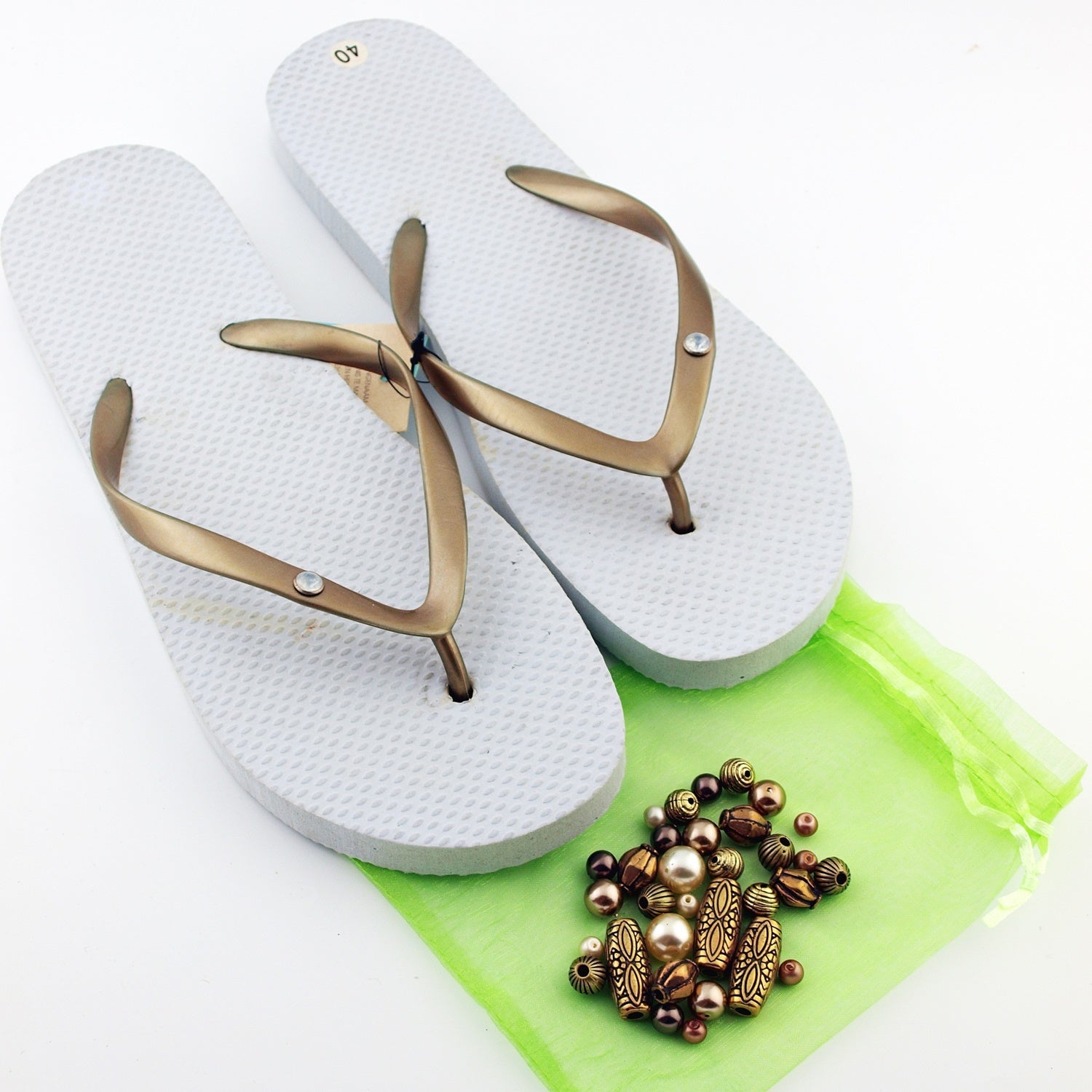 Heerlijk toch om teenslippers te dragen als het warm weer is. Staat toch veel leuker onder dat rokjes, jurkje of je short. Helemaal als jij je teennagels vrolijk hebt gelakt, kleurrijke enkelbandjes om hebt. Maar hoe leuk is het om van je saaie flip flops unieke exemplaren te maken door ze te pimpen met kralen en schelpen, helemaal naar jouw smaak en stijl.